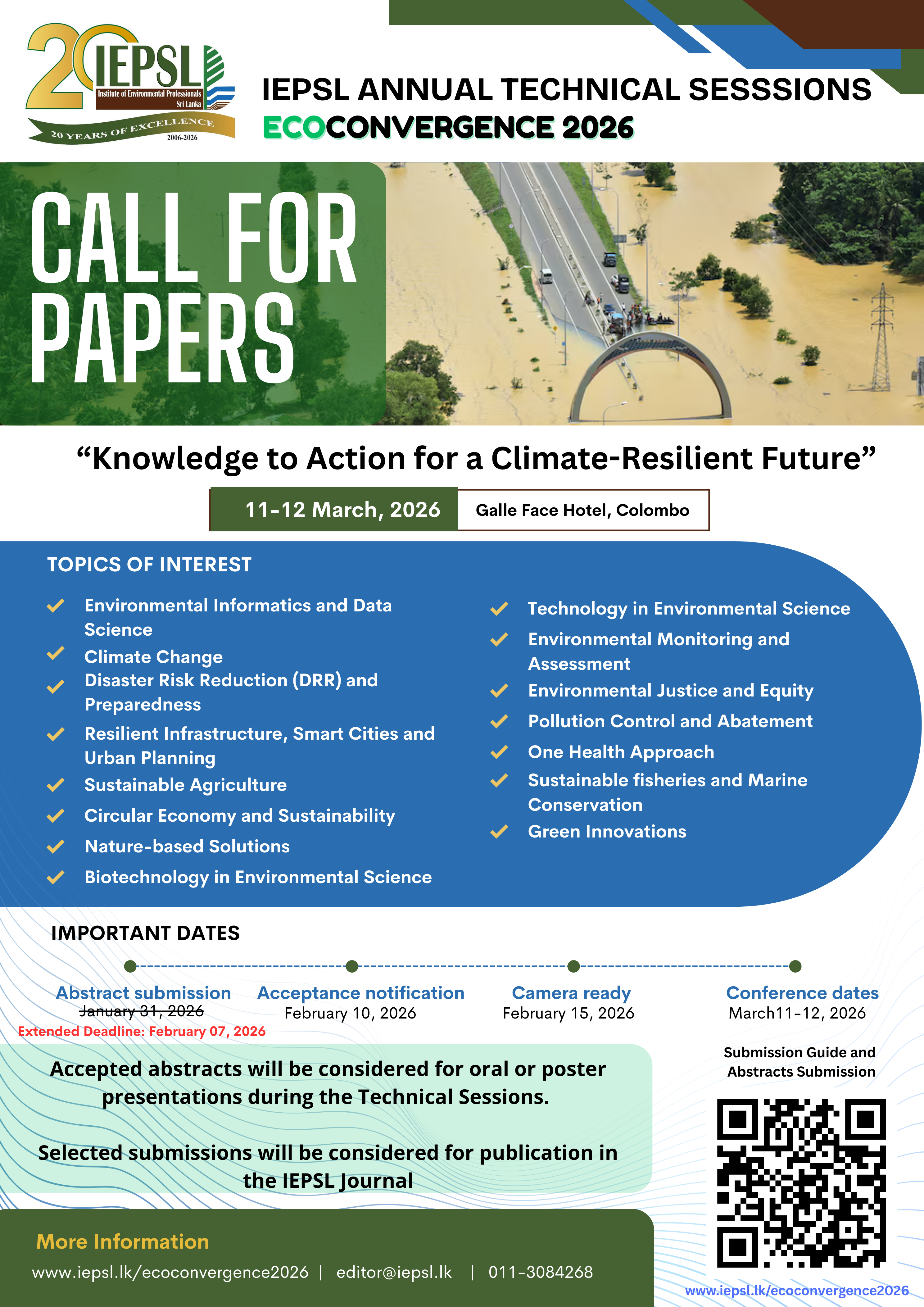 The Institute of Environmental Professionals Sri Lanka (IEPSL) invites researchers, academics, practitioners, policymakers, and industry professionals to submit research abstracts for the IEPSL Annual Technical Sessions 2026, themed “Knowledge to Action for a Climate-Resilient Future.”