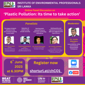 Online Panel Discussion on ‘Plastic Pollution: Its time to take action’ Jun 6, 2023 Online Panel Discussion on ‘Plastic Pollution: Its time to take action’ 6th June 2023 @ 6.30pm Register Now: https://shorturl.at/chCQ1